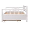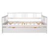 Full Size Daybed Wood Bed with Twin Size Trundle,White