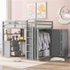 Full size Loft Bed with Drawers,Desk,and WardrobeIf your family needs a bed that can sleep and study, this loft bed will be a good choice for you, it will have you saving space and maximizing functionality with a wide array of features. it is a perfect study area while also allowing space to store your belongings and hang your clothes.The bed with comprehensive guardrails to ensure your sleep safety. You don't need to worry about its quality. The design of the bed is elegant and can fit into your bedroom well.Weight & DimensionsOverall Product Dimension78.3"L x 56.7"W x 65"HNumber of Package3Overall Product Weight235.53 LBSWeight Capacity600LBSRecommended Mattress Thickness4-6"Recommended Age> 6 years oldSpecificationsProduct TypeLoft BedSizeFullColorWhite/Gray/EspressoProduct materialPlywood+MDF+PinewoodNumber of slats14Country of OriginVietnamNotesManual measurement has been used,there may be some reasonable error. All the pictures are taken by actual samples, slight chromatic aberration may occur due to lighting or display.[Maximized space] It takes advantage of the floor space, and allows for a cozy rest, extra work and play space and makes a great piece of furniture for growing families. Coming with drawers and desk, the loft bed helps to store books, display decorations, or to place a laptop.[Versatility galore] The wardrobe comes with a pole in it. It provides extra space to hang your clothes. There is a small shelf at the head of the bed where you can keep some small items.This muti-functional loft bed is crafted from a solid pine wood frame, with commercial grade MDF board for quality control and durability. Guardrails are solidly attached for added safety.[Health and Comfort] No box spring required, and without needing a foundation. The wood frame is sturdy and comes with slats for extra support and ensures air moves freely around your mattress to keep it fresh for years to come.Dimensions: 78.3"L x 56.7"W x 65"H. Mattress not included. Some assembly is required, although we have provided clear instructions and tools.