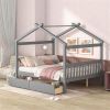Home > Full Size Wooden House Bed with Drawers, Gray