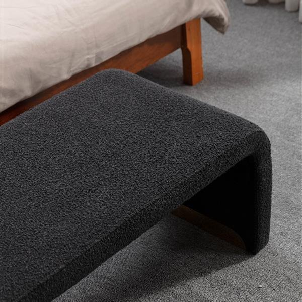 New Boucle Fabric Loveseat Ottoman Footstool Bedroom Bench Shoe Bench With Gold Metal Legs,Black