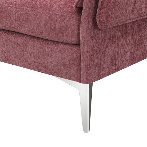 Fit up to four on this sleek sectional sofa, the perfect addition to any den or living room ensemble. Wrapped in Chenille upholstery, this sectional introduces a touch of texture to your interior design, while chromed metal legs round out this piece with a nod to contemporary style. High-density foam cushions give this sectional its medium firmness.