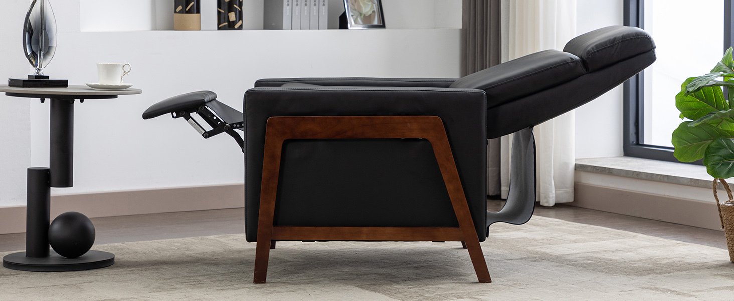 MODERN DESIGN:With its show wood frame and mid-century silhouette, the Wood-Framed Recliner is upholstered in your choice of PU that only gets softer over time. Sit back and stay awhile.
