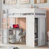 Wood Twin Size Loft Bed with Wardrobes and 2-Drawer Desk with Cabinet, White